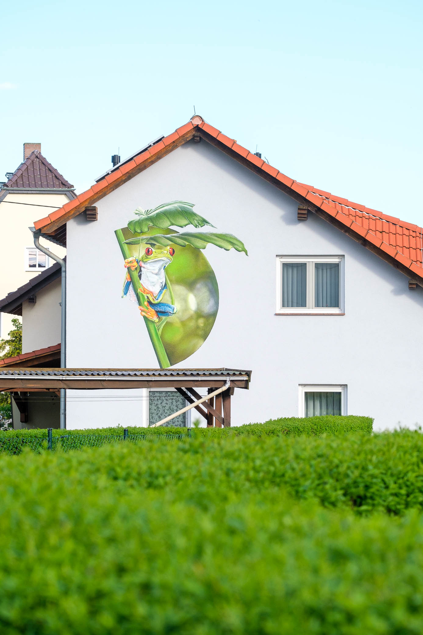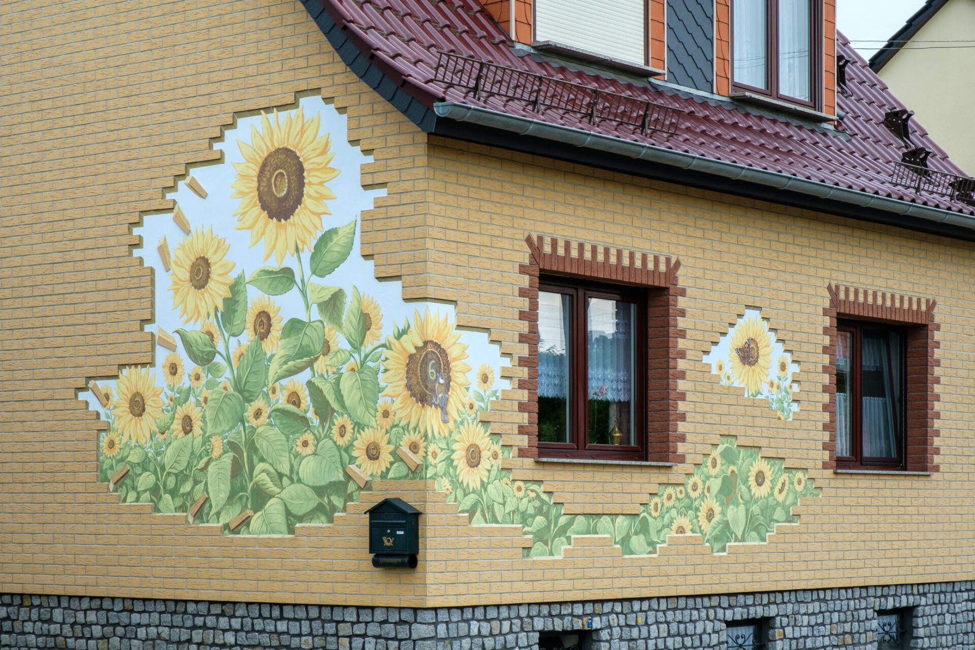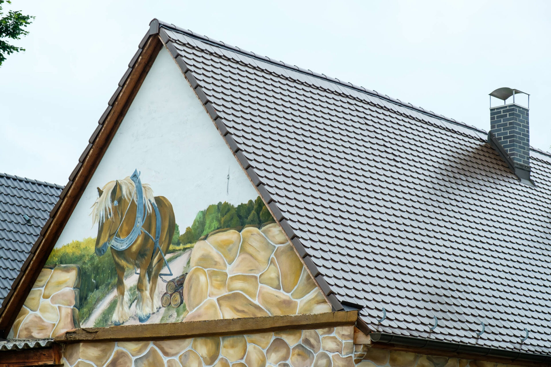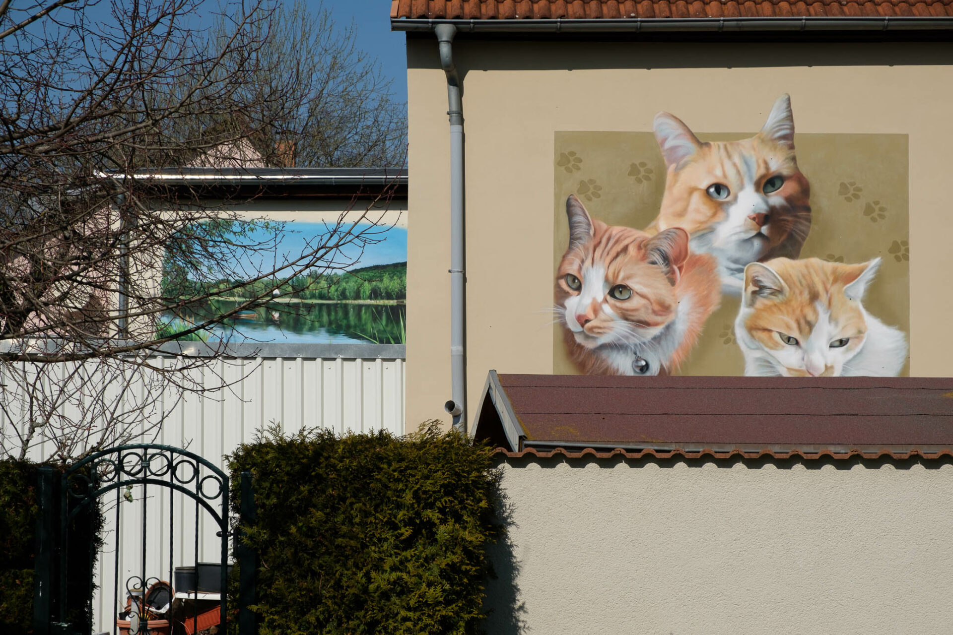 Jedes Gemälde braucht eine Wand. Und die kann auch eine Fassade sein. Grafittis heissen sie in der Stadt, aber wie auf dem Dorf und in der Kleinstadt? Haus-Tattoos! Mit offenen Augen sieht man sie schnell, die bemalten Giebel und Fassaden. Auf Putz: Träume. Sehnsüchte. Hobbys. Ideale. Illusionen und – Tiere. Heilen Welten?