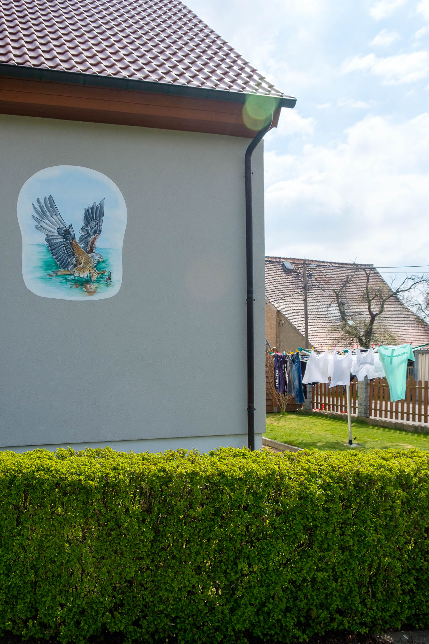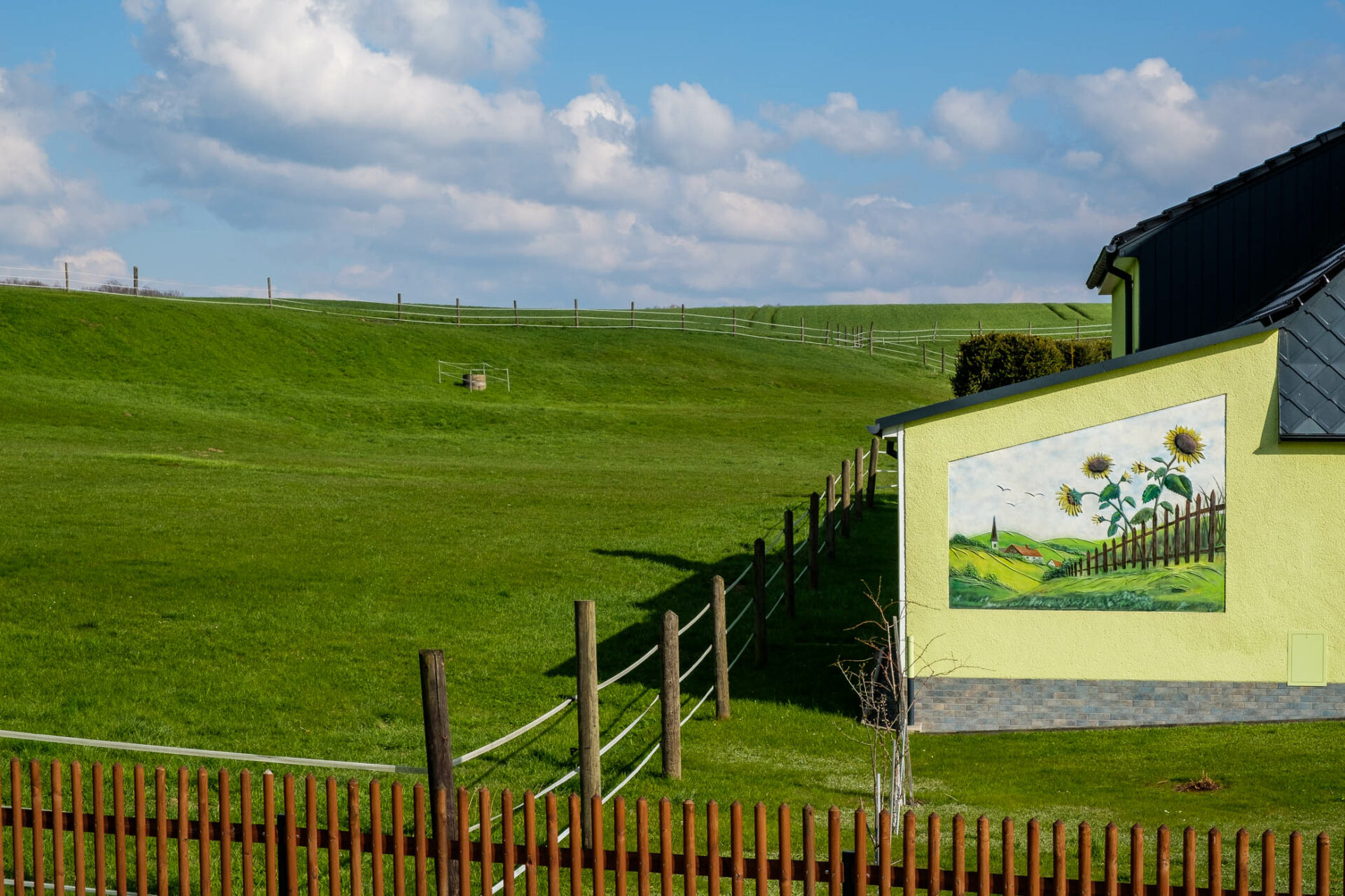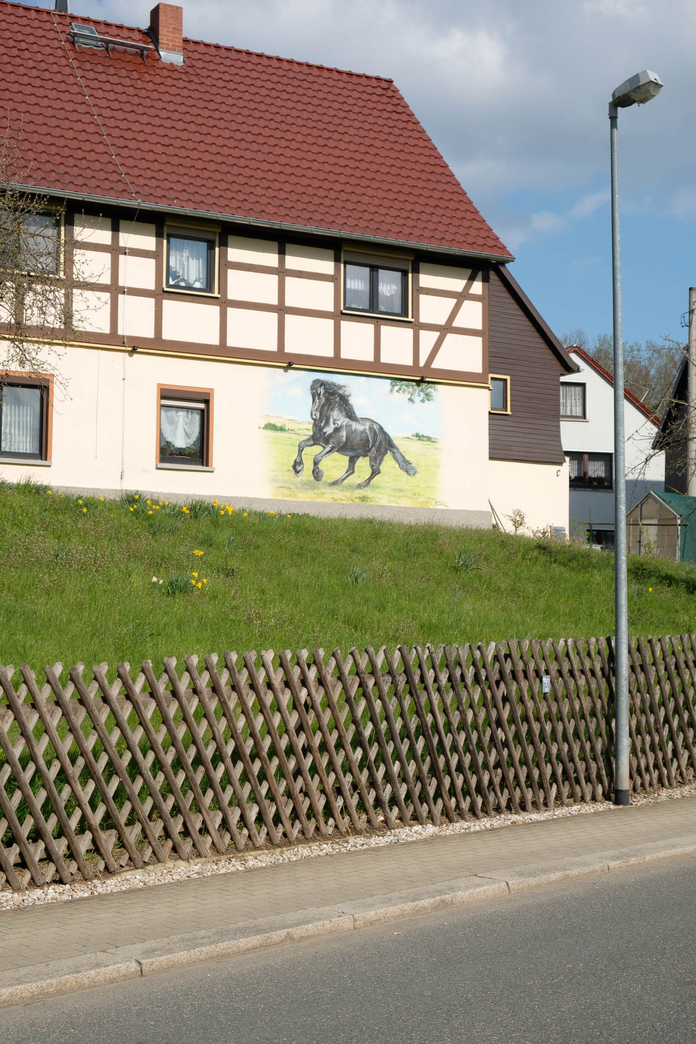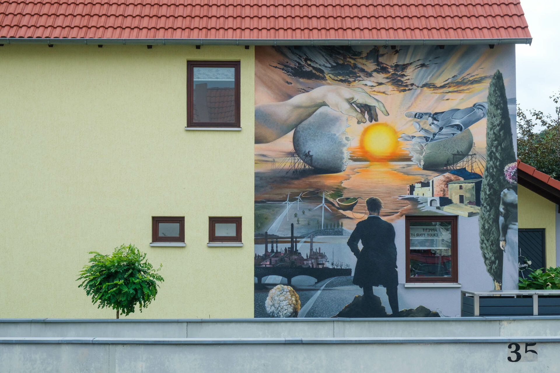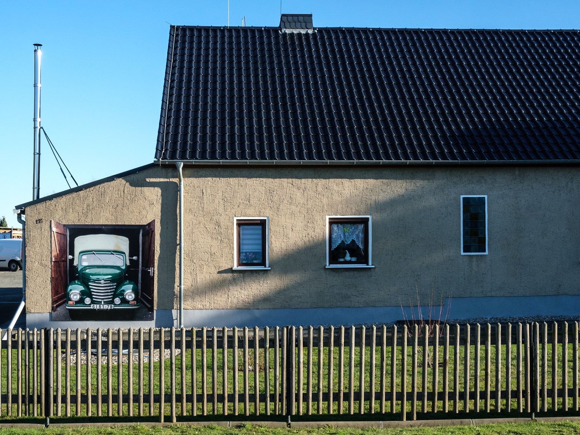 Jedes Gemälde braucht eine Wand. Und die kann auch eine Fassade sein. Grafittis heissen sie in der Stadt, aber wie auf dem Dorf und in der Kleinstadt? Haus-Tattoos! Mit offenen Augen sieht man sie schnell, die bemalten Giebel und Fassaden. Auf Putz: Träume. Sehnsüchte. Hobbys. Ideale. Illusionen und – Tiere. Heilen Welten?