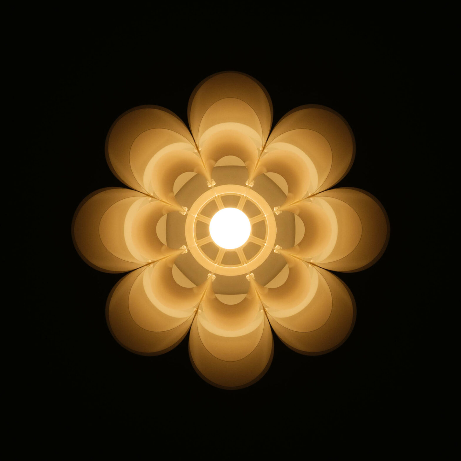 Lampen sind praktisch, wichtig und ästhetisch zugleich. Sie hängen über unseren Köpfen, erhellen unseren Alltag. Betrachtet man diese mal von der anderen Seite, von unten, entstehen wunderbare Muster. Symmetrisch wie aus einem Kaleidoskop.
